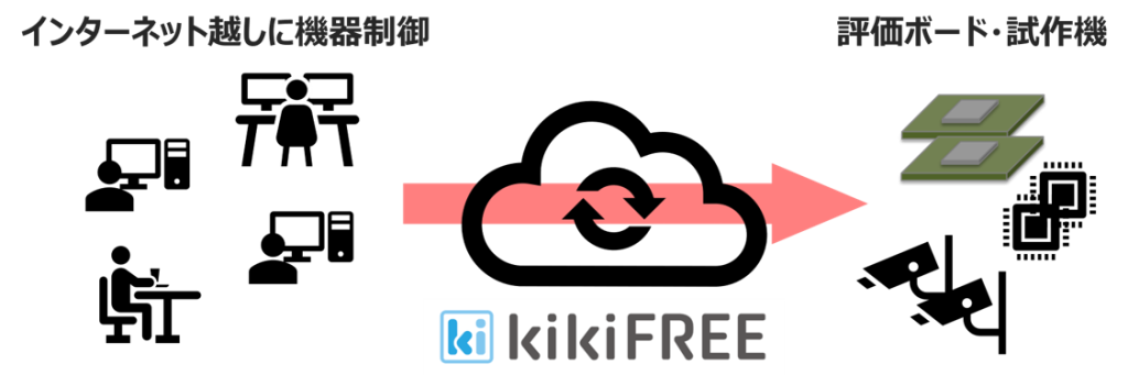 『kikiFREE』は、実機を用いた開発・評価の 効率化とコスト削減を実現する、リモート開発ソリューションです。