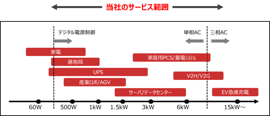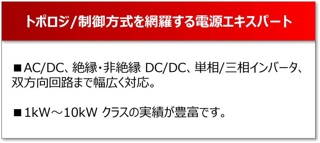 1kW~10kWクラスを中心に、幅広い電源の開発を手がけています