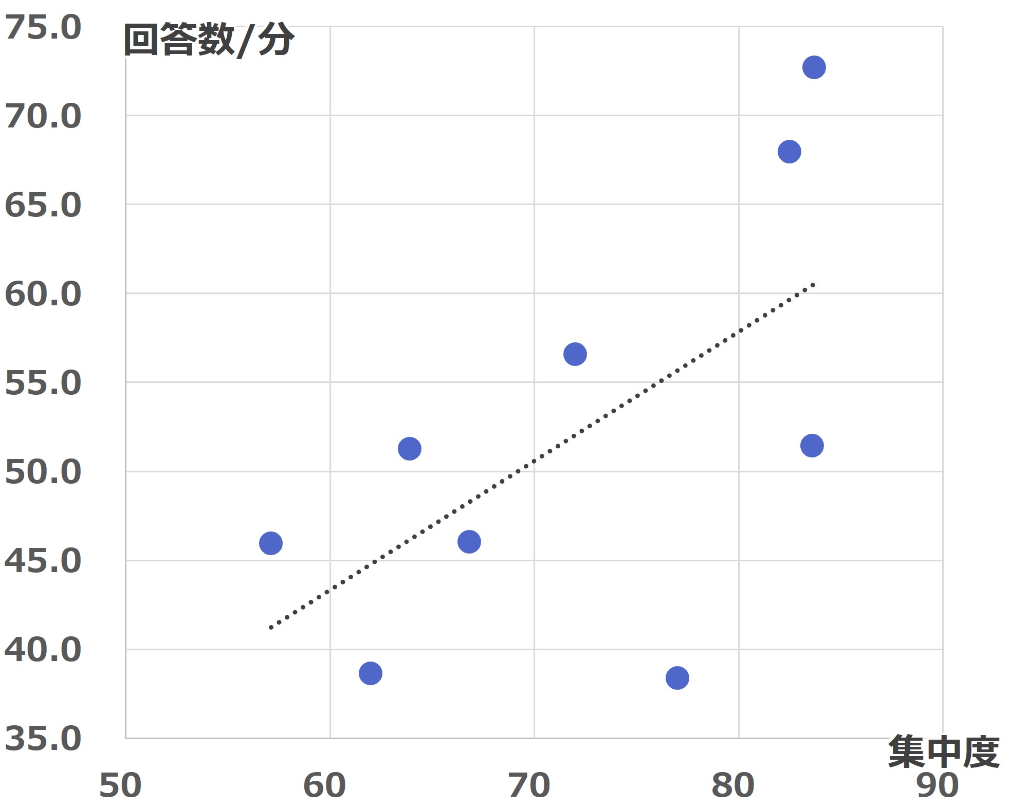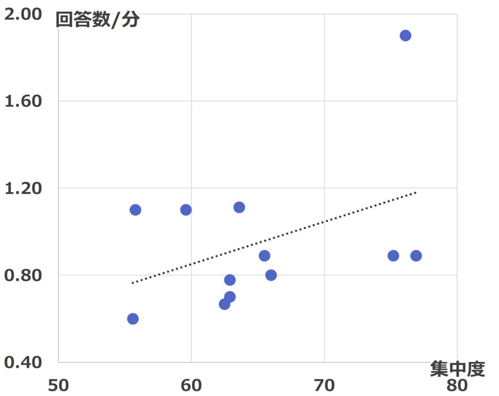 学習中の集中度が高いと回答数が多い