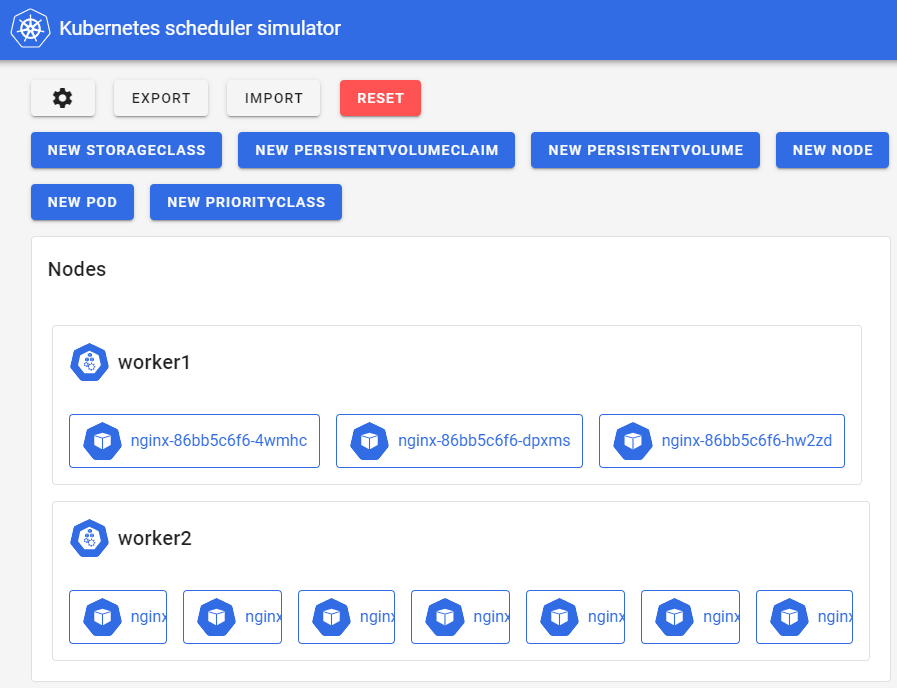 スケジューラのローレベルな動作を可視化したいのですが、Dashboardの機能では十分でないため、 kube-scheduler-simulatorのフロントエンドを使うことにしました。